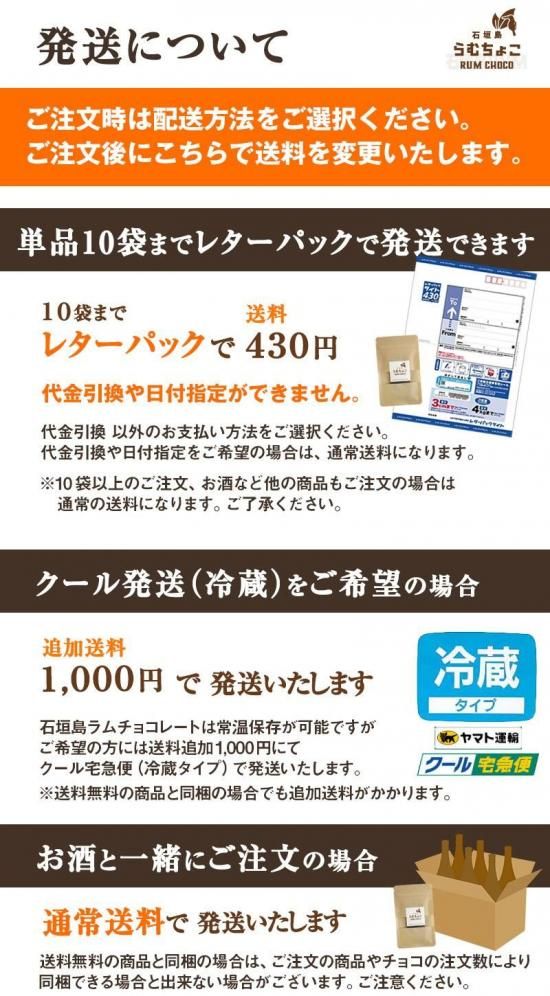 チョコレートのみ単品1〜10袋まではレターパック(送料430円)で発送